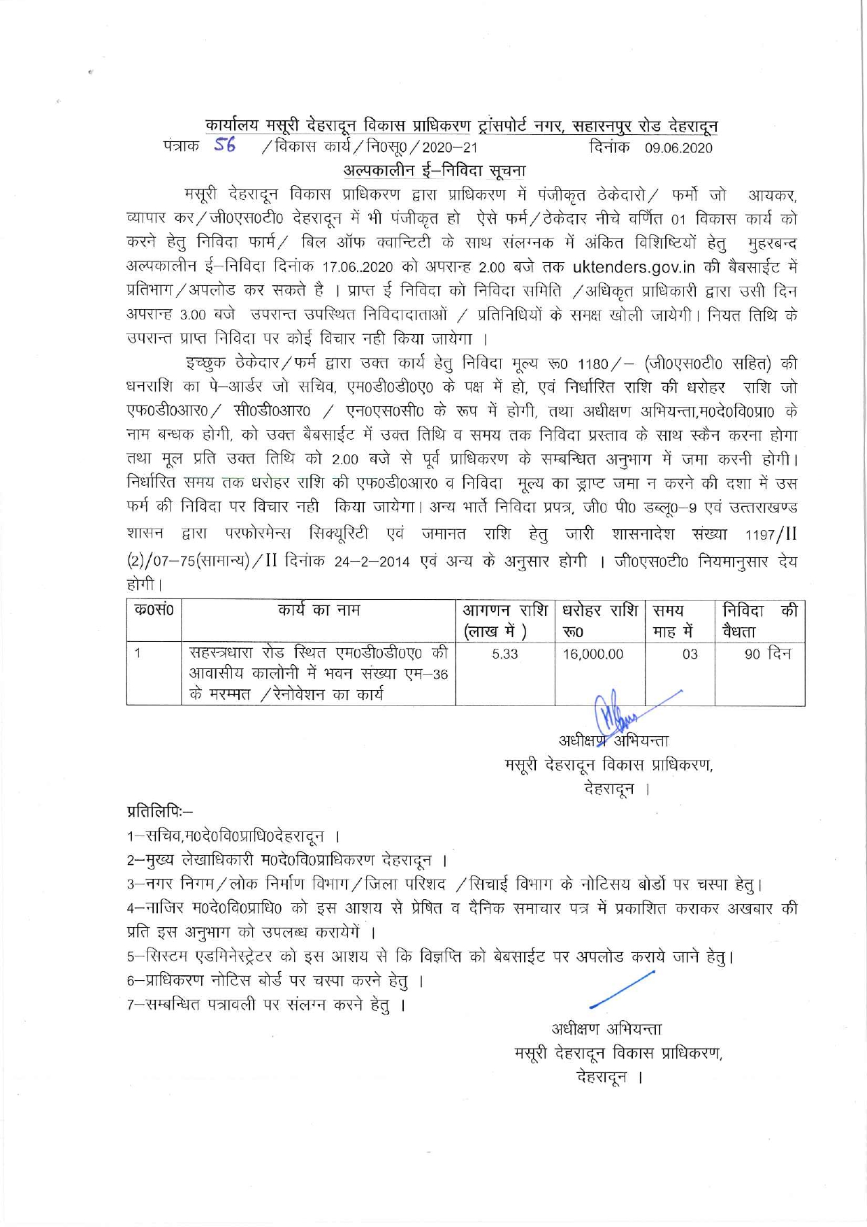 Work of repairing and renovation of House no. M-36 in MDDA residential colony at Sahastradhara road. ckitadminNews & Updates