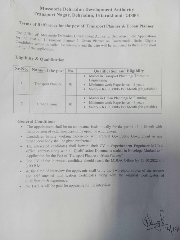 Recruitment of Transport Planner and Urban Planner in MDDA on Contractual Basis ckitadminNews & Updates